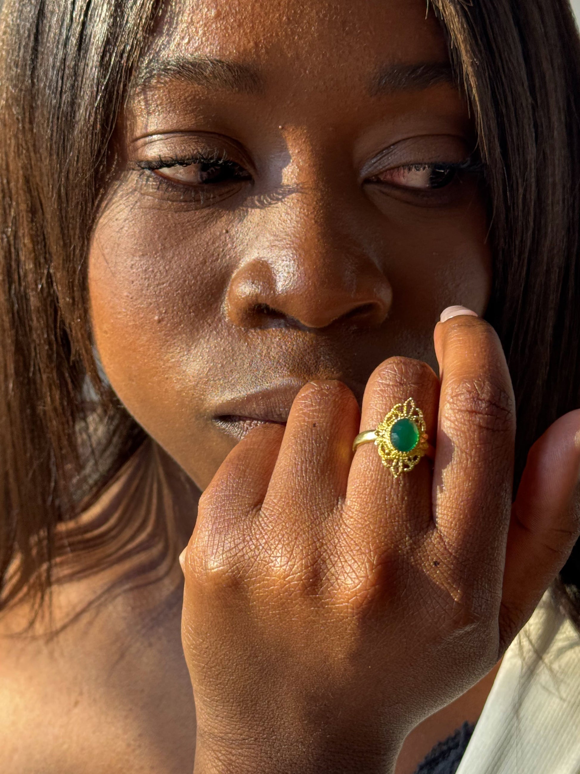 Un anello che parla a chi ama i dettagli insoliti, le forme che raccontano e quella particolare sfumatura di colore che sembra avere sempre un po’ l’aria magica. Insieme alla collana “Incanto”, crea un abbinamento perfetto.